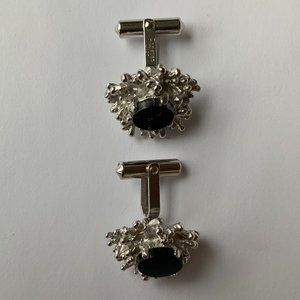 DESCRIPTION: These vintage cuff links measure 2.2 cm (length) by 2.8 cm (height) (All measurements are approximate). They are both signed Christian Dior. They are embellished with a nice round black onyx (they could be glass…cannot say for sure) stone in the middle.