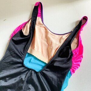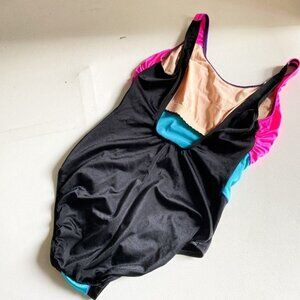 Vintage Christina Neon Pink Blue Low Back One Piece Swimsuit L