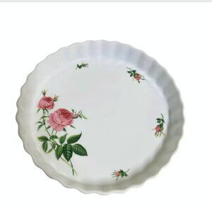 Vintage Christineholm Pink Cabbage Rose Quiche Baking Dish