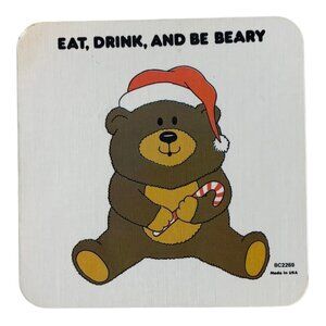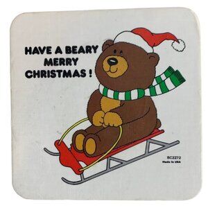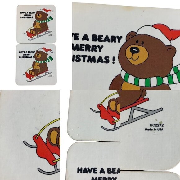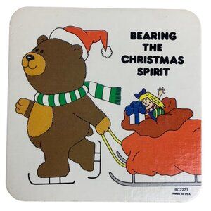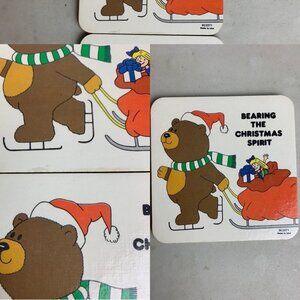 Vintage Christmas Coasters Bears Set Of 6 Winter Holiday Decor