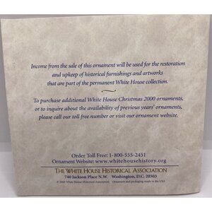 Add a touch of vintage charm to your Christmas decor with this collectible ornament from The White House Historical Association. Made of mixed materials including resin, plastic, and metal, this small-sized ornament features a beautiful house in multicolor. Perfect for collectors, the ornament is from the year 2000 and is a licensed original.