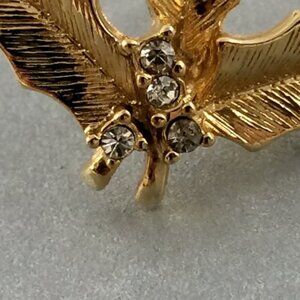 Vintage Christmas Holly Rhinestone Berries Tie Tack Lapel Pin Goldtone Metal