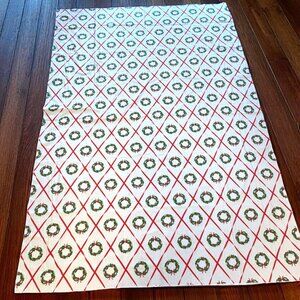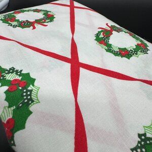 Vintage Christmas Linen Tablecloth and 8 Napkins Wreaths Holly 80 x 60 in *read*