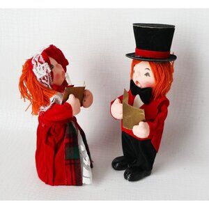 For your consideration are a pair of vintage Christmas carolers with paper mache faces and cloth clothing.