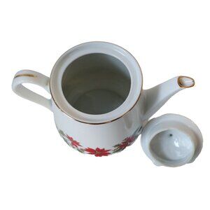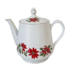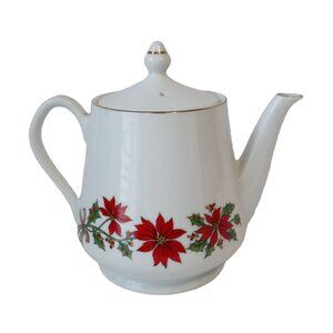 Vintage Christmas Poinsettia Teapot Gift Christmas Dining