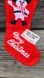 Bright red Christmas stocking featuring a cheerful snowman design.