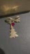 Gold tone vintage brooch with floral etching on front of the tree. Very pretty Red dangly crystal attached. All original. Excellent condition.