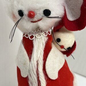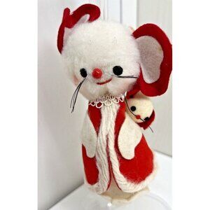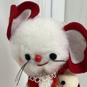 Vintage Christmas White Red Flocked Felt Mouse Mice Tree Ornaments Made in Japan