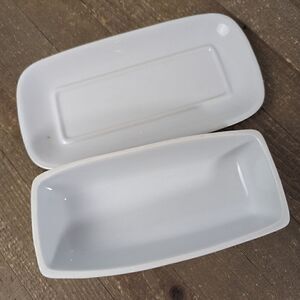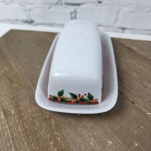 Vintage Christmas dishes, Ancam Poinsettia pattern butter dish with lid