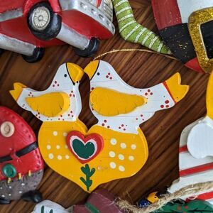 Wooden metal and plastic Vintage ornaments set