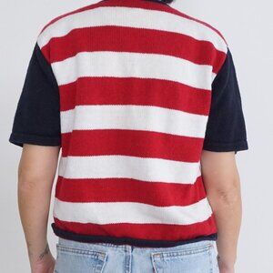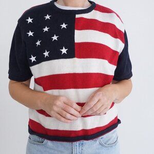 Vintage Christopher & Banks Navy Red Patriotic USA Flag Knit Crewneck Sweater XL