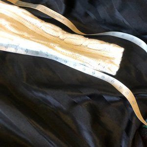 This was a size medium (see later measurements and tags in pics), but was taken in carefully to fit more like a small. Fabric was left intact and can easily be let out simply with a seam ripper. Super clattering, gorgeous war sweater in a rich cream colour!