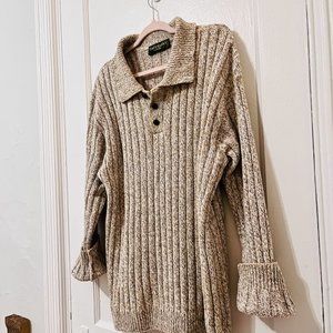 Vintage Chunky Oversized Sweater, Grey, Beige & Brown, US L