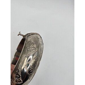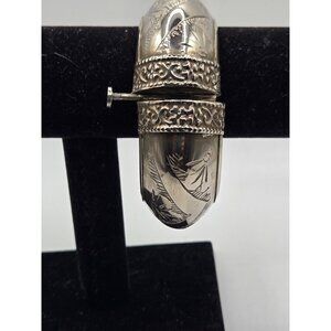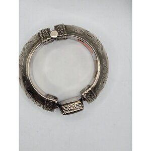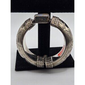 Vintage Chunky Tribal Engraved Silver Hinged Agate Cuff Bracelet Rare Incredible