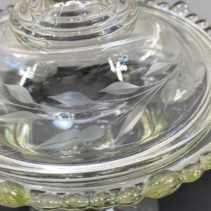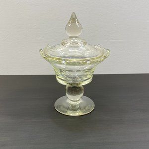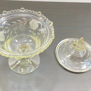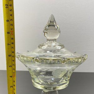 Vintage Circle Design Cut Glass Pedestal Candy Dish with Matching Lid & Designer