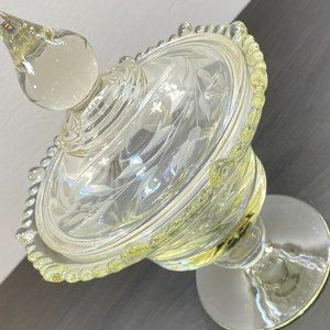 Vintage Circle Design Cut Glass Pedestal Candy Dish with Matching Lid & Designer Finial, Paden City Glass Compote Pedestal Lidded Candy Dish