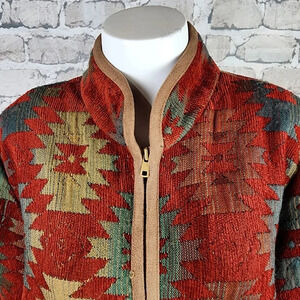 Vintage Circle T Zip Front Southwestern Woven Duster Jacket Terracotta Large