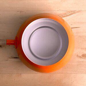 Vintage classic Danish mid-century modern fondue pot in a vibrant orange colour remains in very good condition. Mild surface wear on the exterior pot bottom. Pot Interior is exceptional and appears like-new. Ready to use and enjoy.