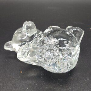 Vintage Clear Bubbled Teddy Bear Bow Tie Art Glass Paperweight