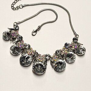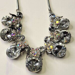 Vintage Clear Crystal Rhinestones Silvertone Necklace