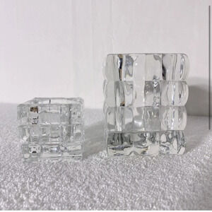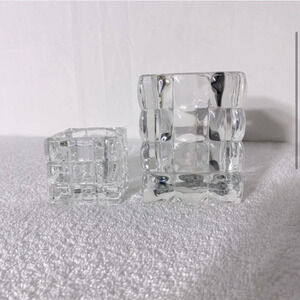 Vintage Clear Cut Crystal Square Textured Ice Cube Candle Holders