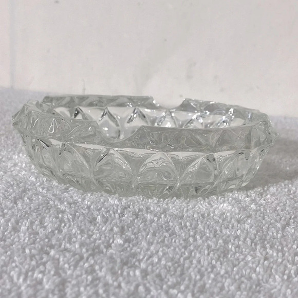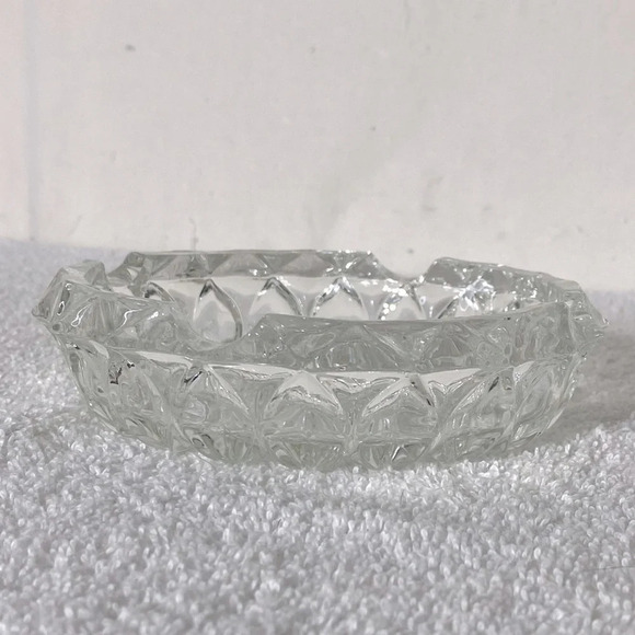 Vintage Clear Cut Glass Round Ashtray Trinket Dish