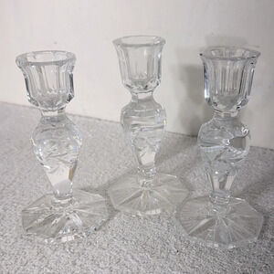 Vintage Clear Lead Crystal whirling Star Pinwheel Candlestick Holders X3