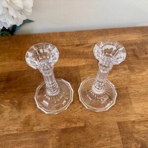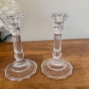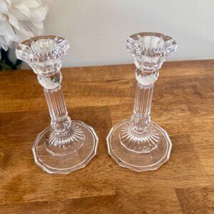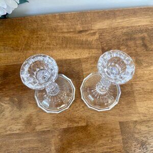 Vintage Clear Pressed Glass Candle Holders – Elegant Faceted Pair