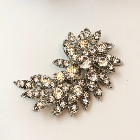 Very Sparkly Vintage Rhinestone Brooch. Measures 2.5" in length by 1.5" in width. C clasp closure. In excellent condition.