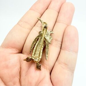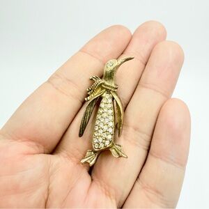 Adorable vintage gold-tone penguin brooch adorned with clear rhinestones. A playful and sparkling accessory perfect for winter or animal-themed collections.