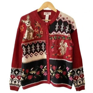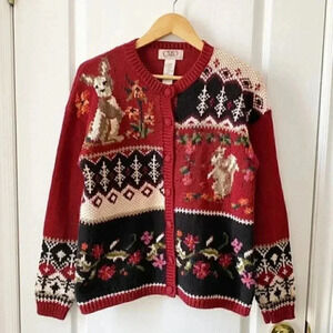 Vintage Cleo Cardigan Animal Embroidered Grandma Sweater Red Blue Size Medium