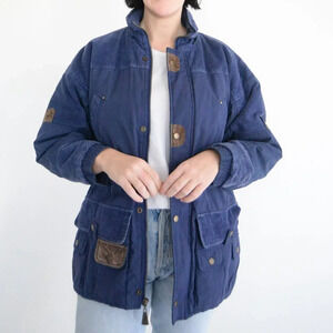 Vintage Climate Control Navy w Corduroy Patches Winter Jacket L (14)