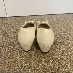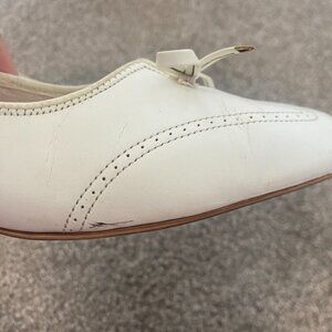 Vintage Clinic White Leather Low Pump Heels W Wingtip Victorian Style Size 7 1/2