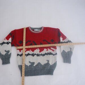 Vintage Club International Red Gray Eclectic Grandpa Outdoor Crewneck Sweater M