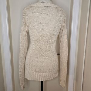 Creamy beige loose knit long sleeve scoop neck jumper sweater with ribbed detailing, by Club Monaco.