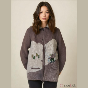 Beautiful colours that are super easy to match! Cute Pom Pom type “buttons” down the front. Not long - hits above my hips at 5’8” tall. Excellent vintage condition.