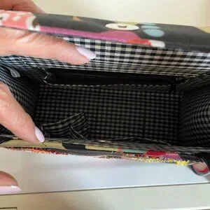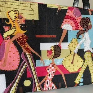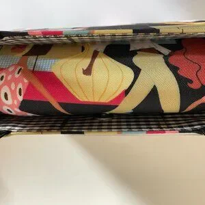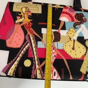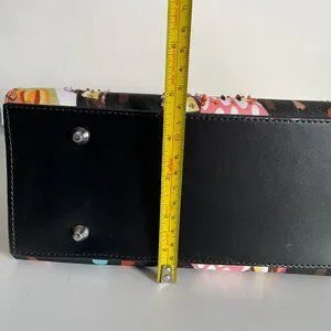 Great colours with bead accents. New condition, purchased but never used. Has "flap" closure.