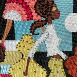 Club Rochelier Purse has Bead design on front of purse, tall slim hand straps.
