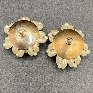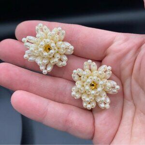 Vintage Cluster Earrings with Faux Pearl Beads in a Flower Design - pierced