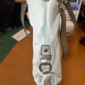 Vintage Coach Ashley shoulder satchel leather bag in white and silver with pink liner