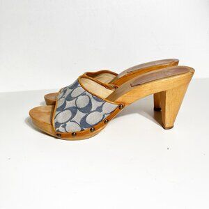 Vintage Coach Brenda Wooden Siganture Clog Blue Denim size 9