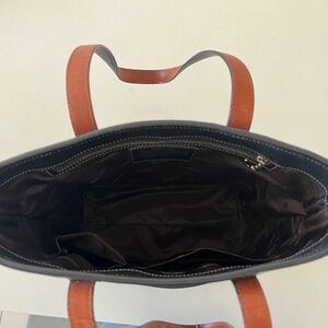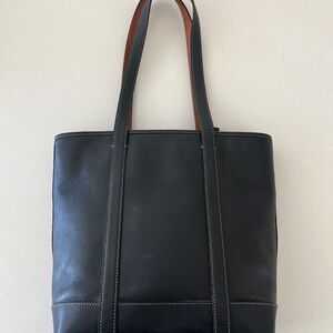 NWOT. Beautiful classic black leather bucket bag with two-toned, natural straps. Perfect condition. Authentication number inside.