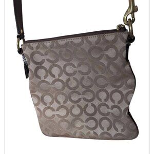 Vintage Coach Crossbody Purse Gray/Brown Canvas Monogram Signature Hand Bag