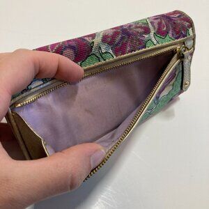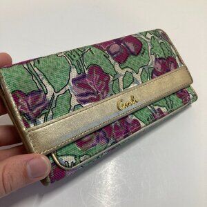 Vintage Coach Rare Ashley Floral Iris Tri-Fold Wallet Canvas and Leather Gold