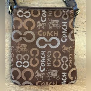 Elegant Coach crossbody bag with signature print. Ideal for daily essentials.