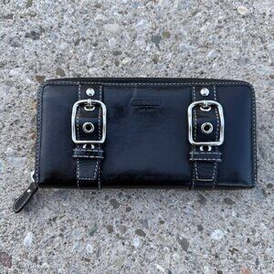 Vintage Coach Y2K Double Buckle Black Leather Wallet – Large Zip-Around