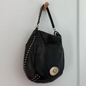 Vintage Coach black leather gold studded Circle Hobo shoulder bag
