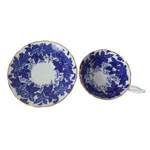 For your consideration is a vintage beautiful teacup and saucer with a cobalt blue ivy design, made by Coalport.