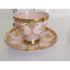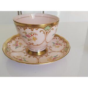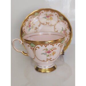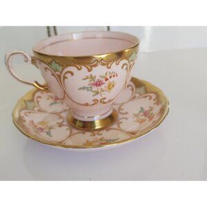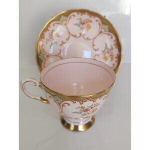 Vintage Coalport Bone China Teacup and Saucer set Pink, Gold trim Floral