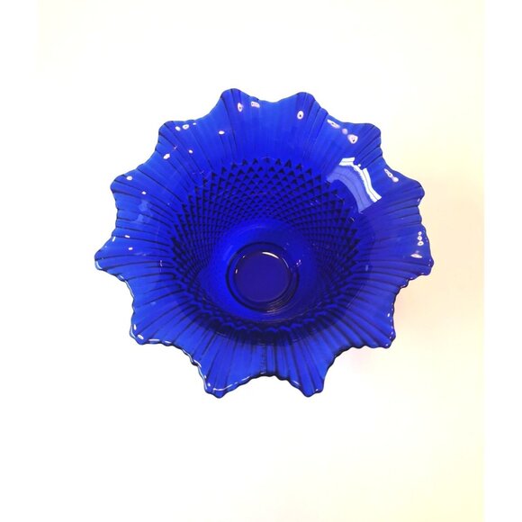 Vintage Cobalt Blue Diamond Point Ruffled Glass Bowl – Mid-Century Pressed Glass